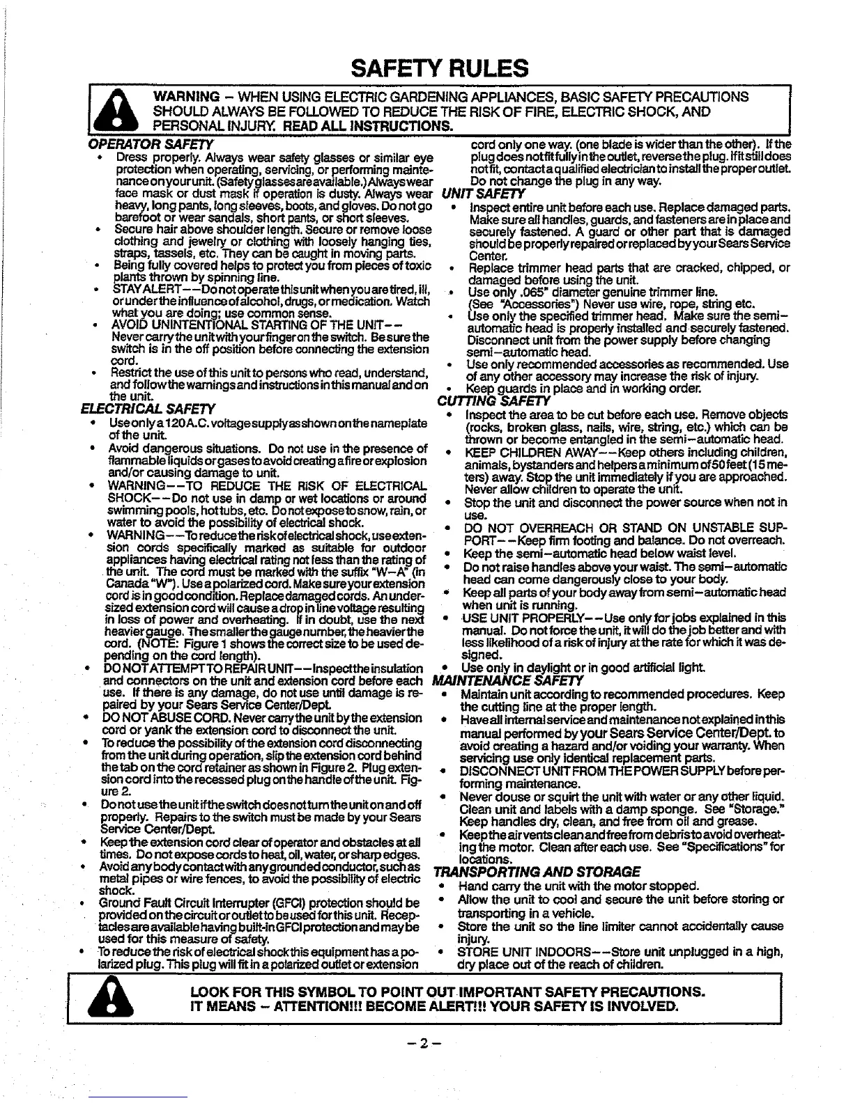 WARNING - WHEN USINGELECTRIC GARDENING APPLIANCES, BASIC SAFETY PRECAUTIONS