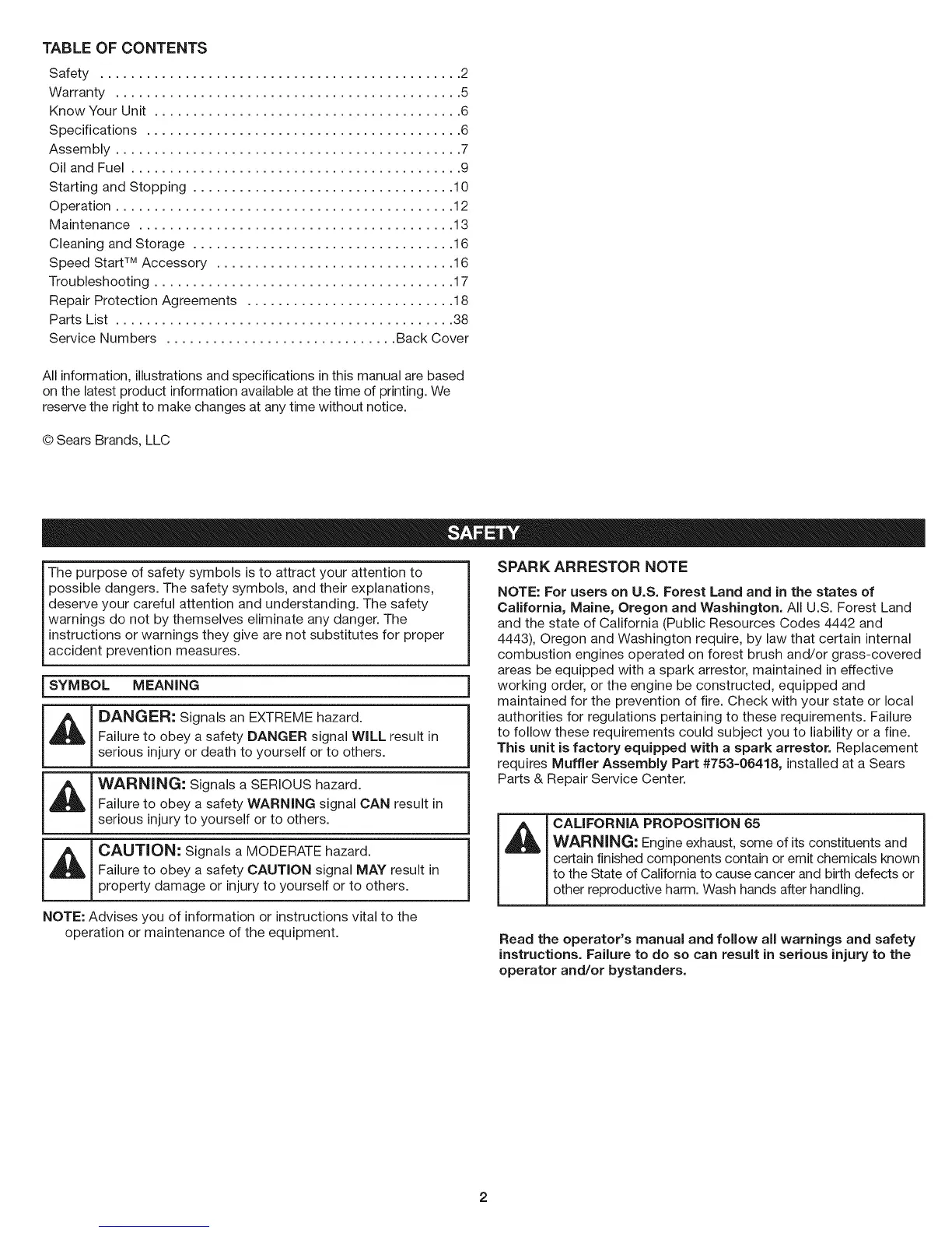 Safety............................................... 2