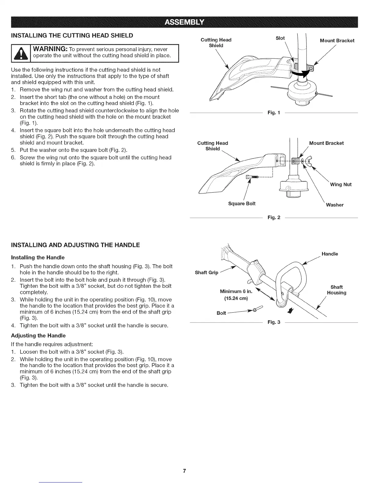 1. Push the handle down onto the shaft housing (Fig. 3). The bolt