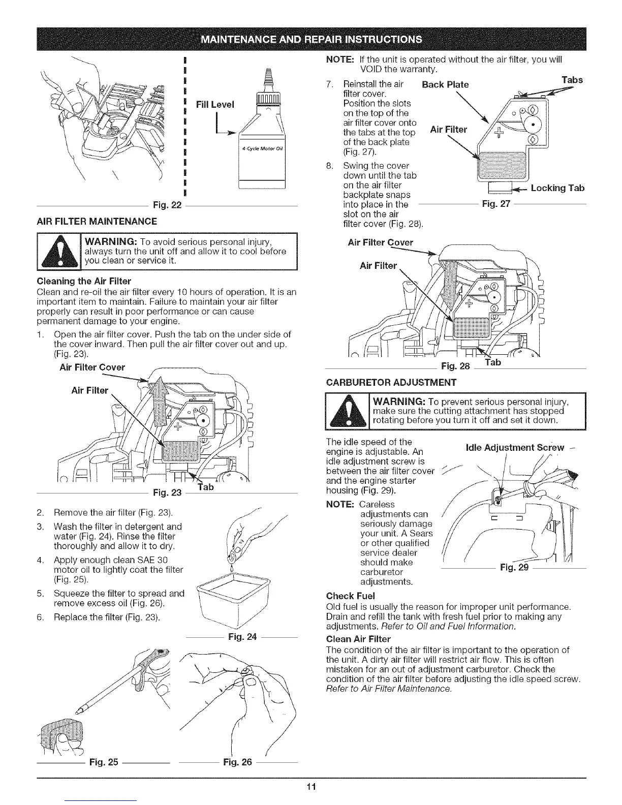 Clean and re-oil the air filter every 10 hours of operation. It is an