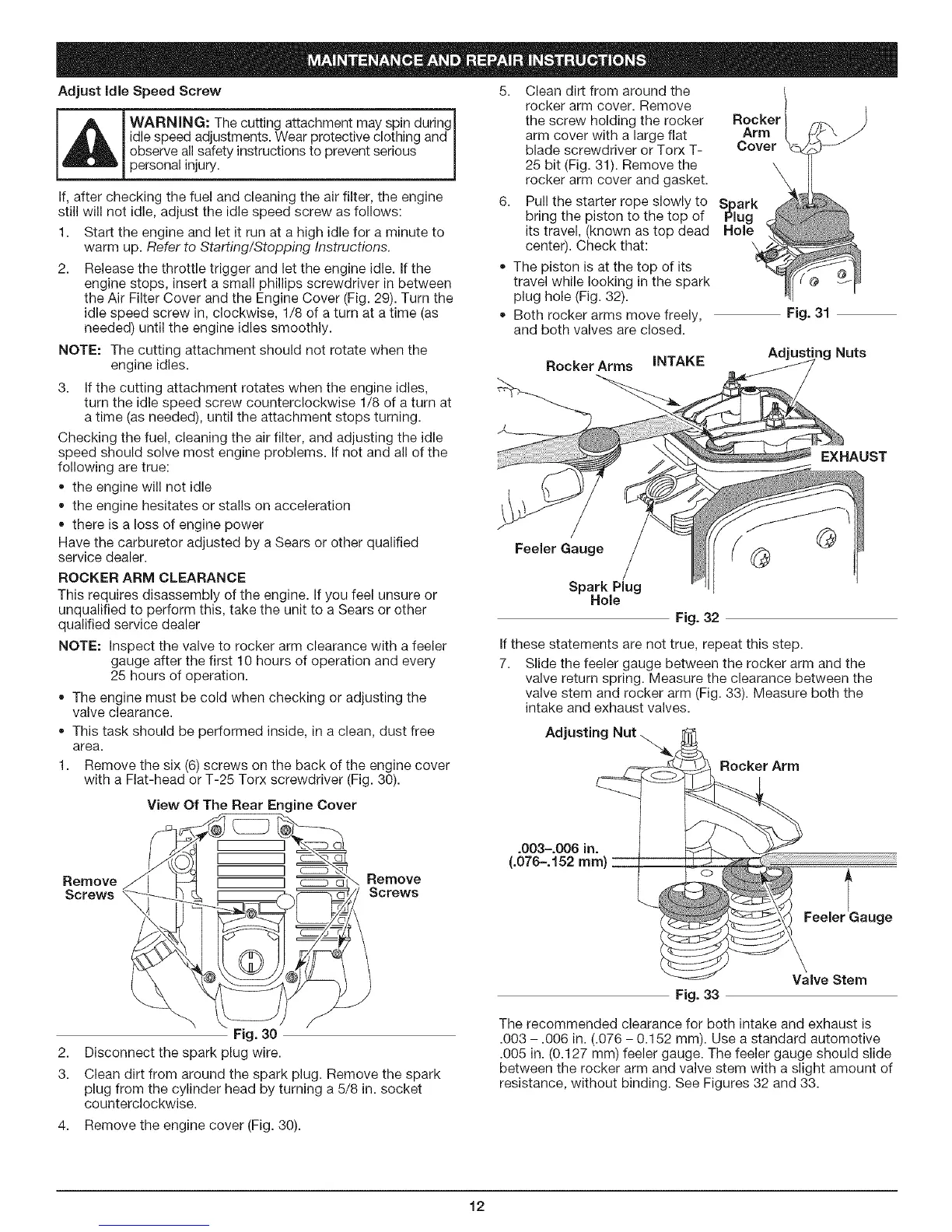 the Air Filter Cover and the Engine Cover (Fig. 29). Turn the