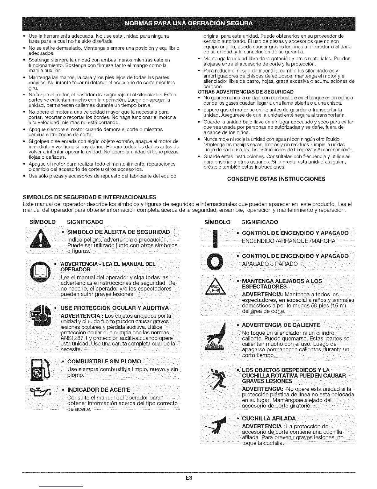 manual del operador para obtener informaci6n completa acerca de la seguridad, ensamble, operaci6n y mantenimiento y reparaci6n.