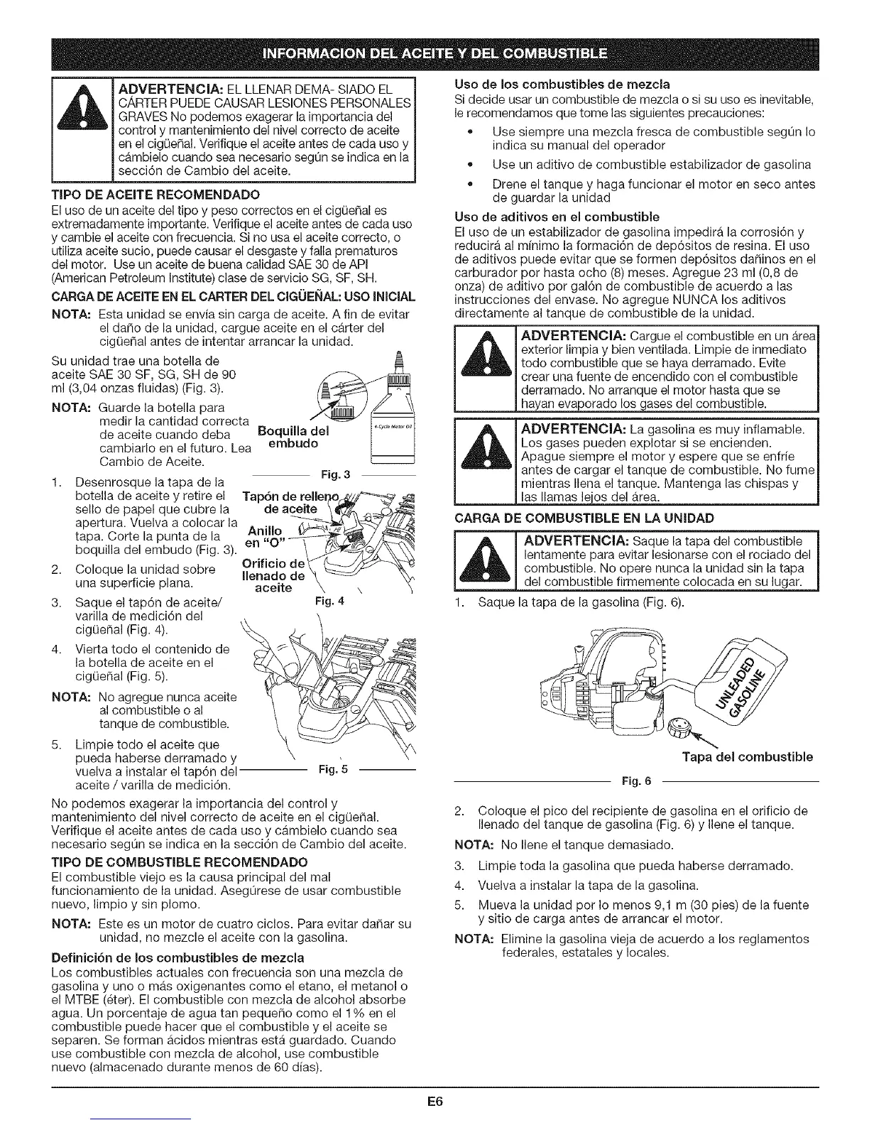 Ilenado del tanque de gasolina (Fig. 6) y Ilene el tanque.