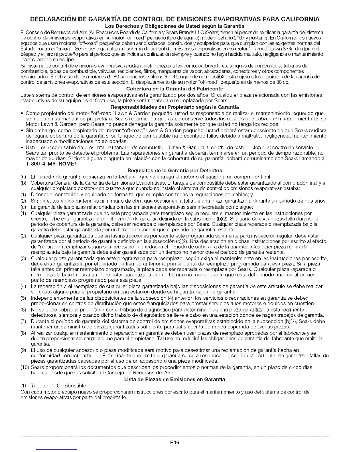 El Consejo de Recursos del Aire (Air Resources Board) de Californiay Sears Brands LLC (Sears)tienen el placer de explicar la garantia del sistema