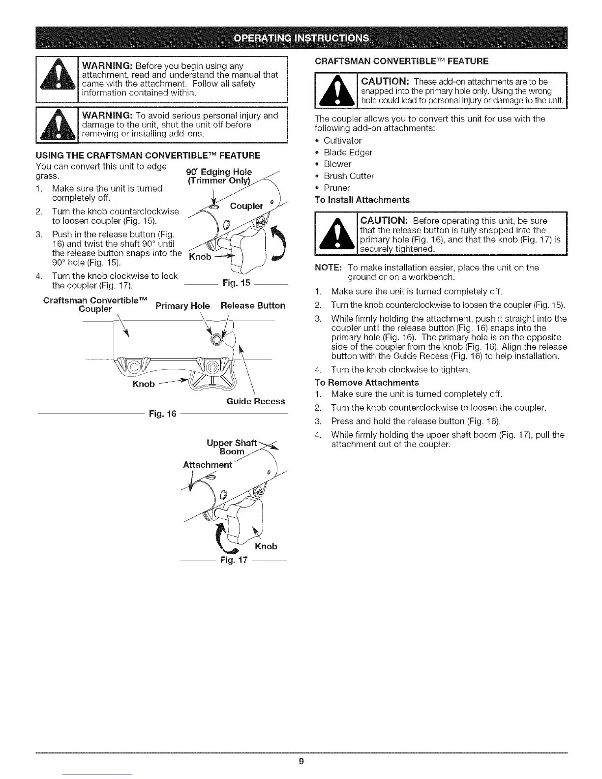 USING THE CRAFTSMAN CONVERTIBLE TM FEATURE