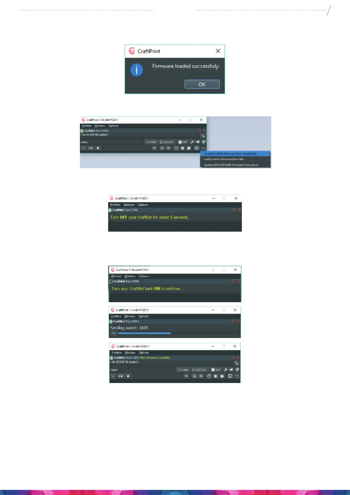 9. Open again the “…” menu and select Update CraftBot rmware from loaded le…