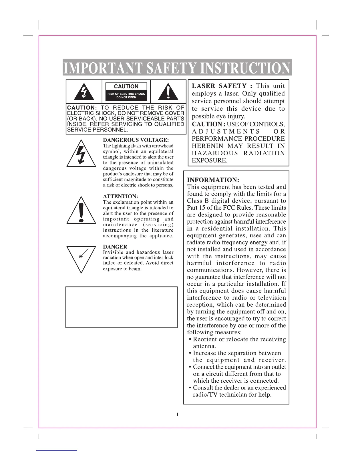 Craig CD6920 - Important Safety Instructions; Electrical and Laser Safety