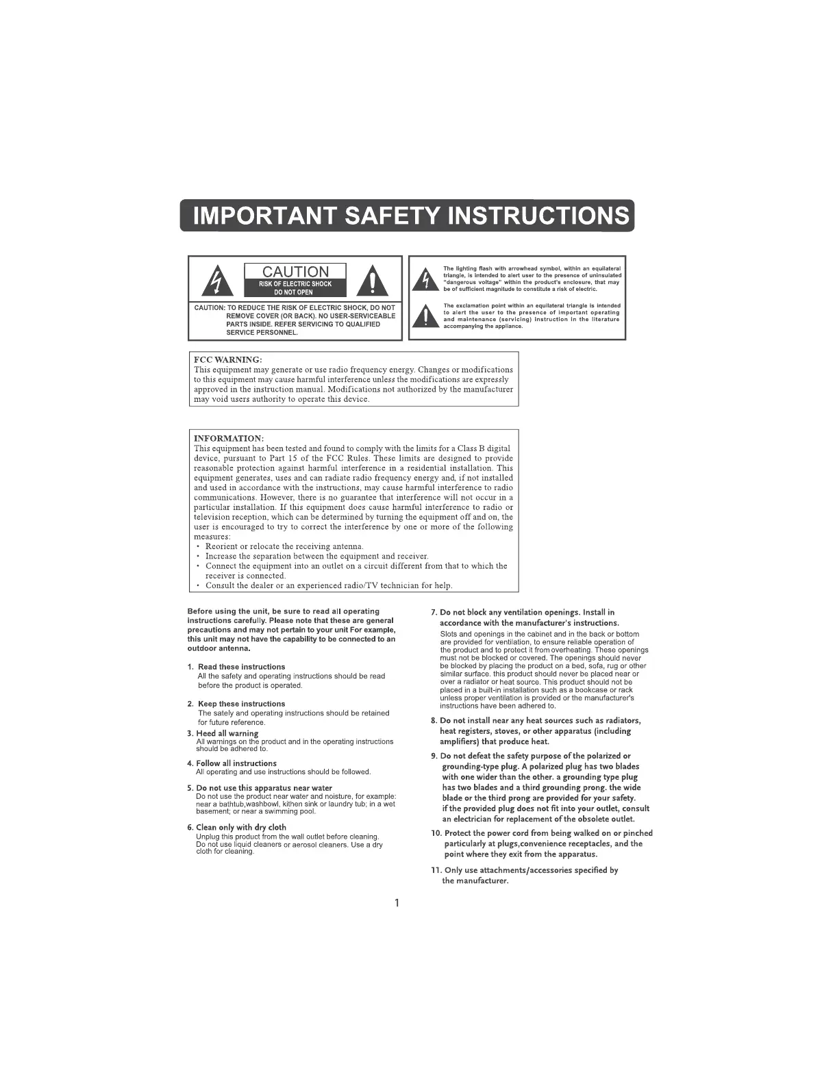 Craig CHT820DG - IMPORTANT SAFETY INSTRUCTIONS; General Safety Precautions