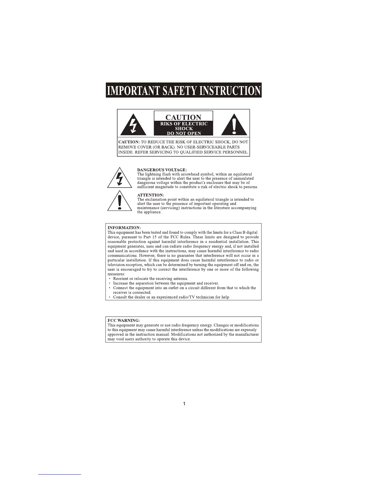 Craig CHT823 - IMPORTANT SAFETY INSTRUCTION; FCC WARNING