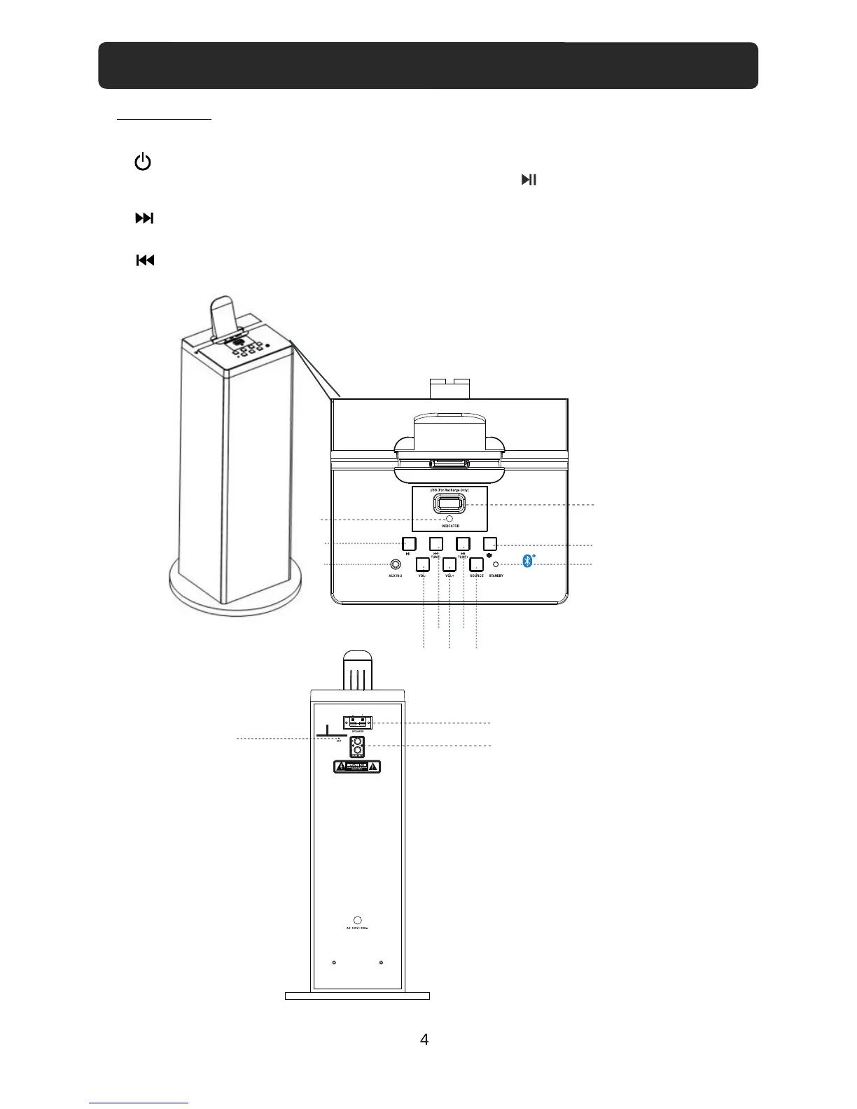 1. USB Port (For recharge only)