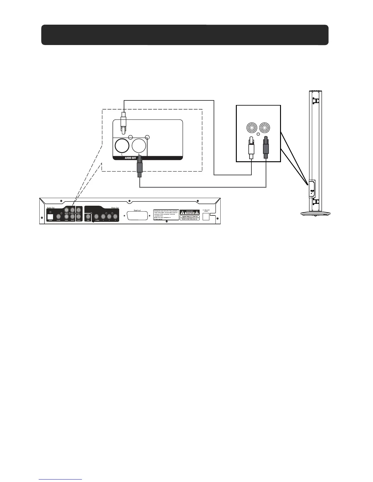 2. Connect the other end to the Audio out jacks on the external player (such as Television, VCR, DVD