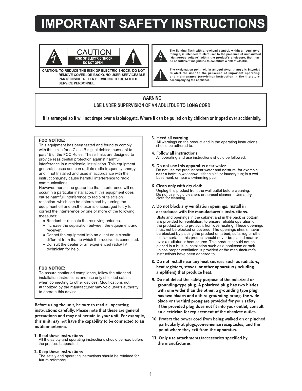 Craig CHT915 - Important Safety Instructions; Read and Keep Instructions; Heed Warnings and Follow Instructions; Usage Environment Precautions