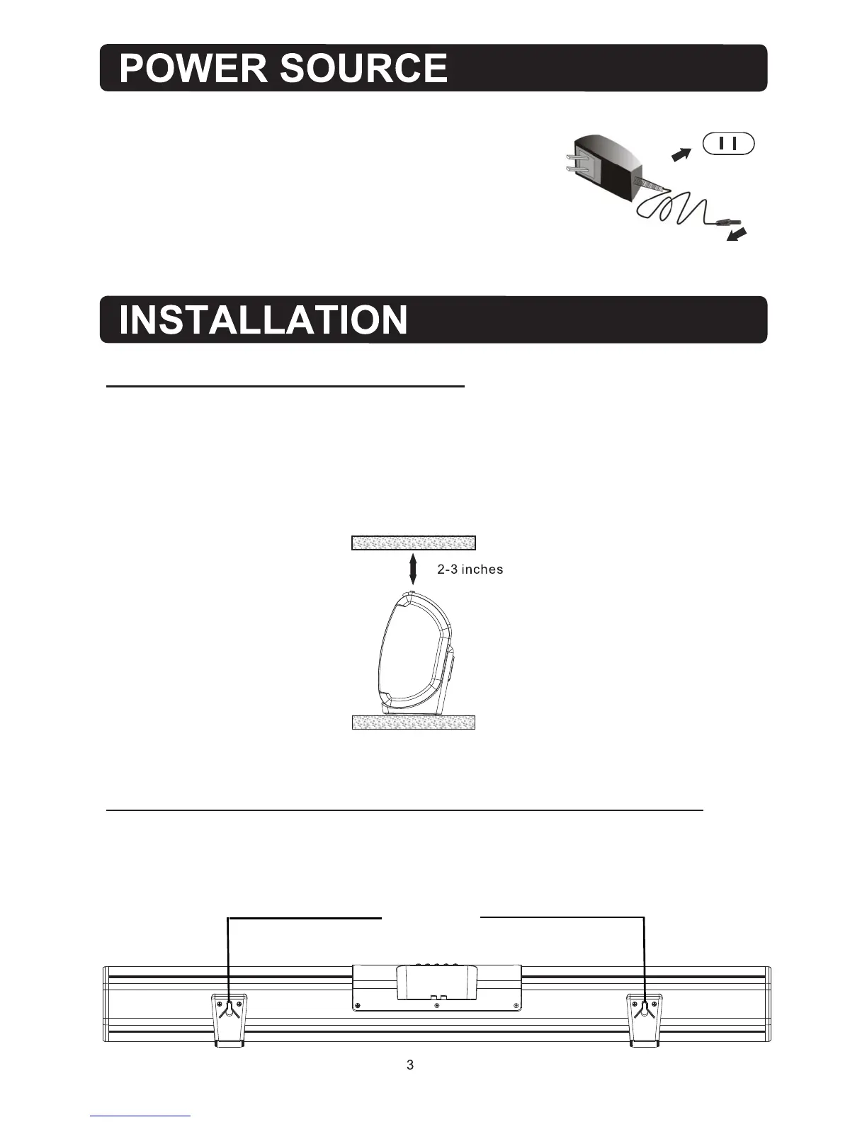 enclosed space, be sure to allow at least 2-3 inches of space around the Sound Bar