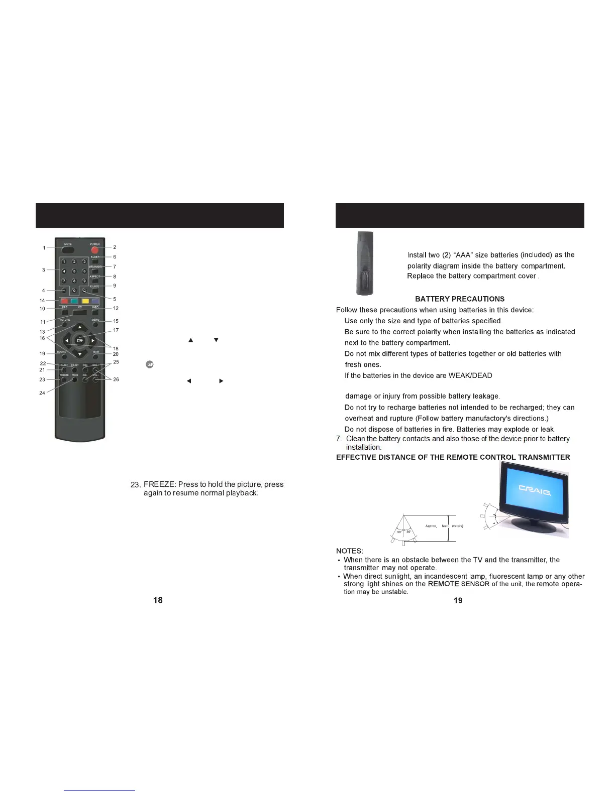FREEZE: Press to hold the picture, press