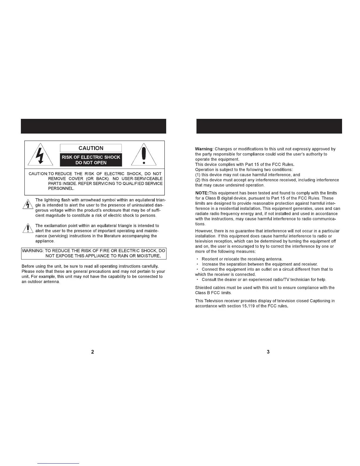 Craig CLC503 - Important Safety Instructions; General Safety Warnings; FCC Compliance Statement