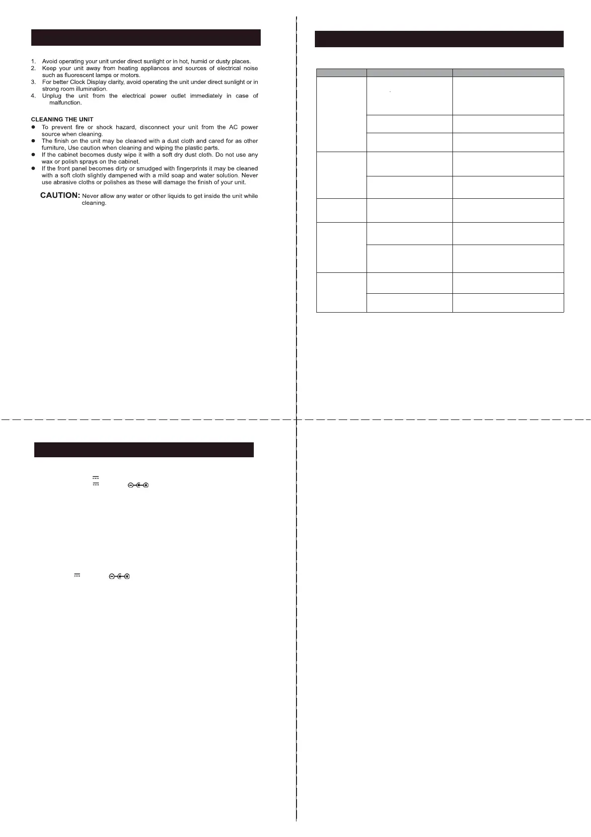 If you experience difficulties in the use of the unit, please check the followings: