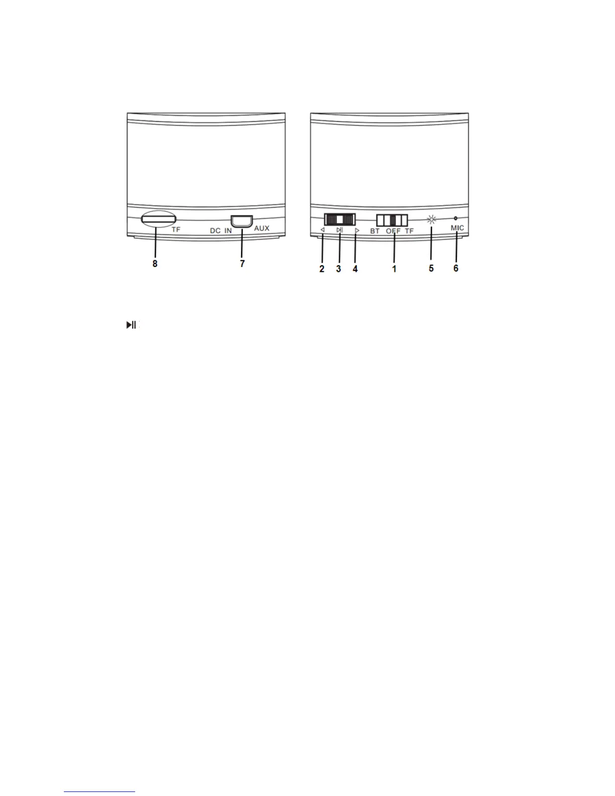 1. Slide the BT- OFF - TF Switch to BT position to turn on the unit. Blue Indicator will