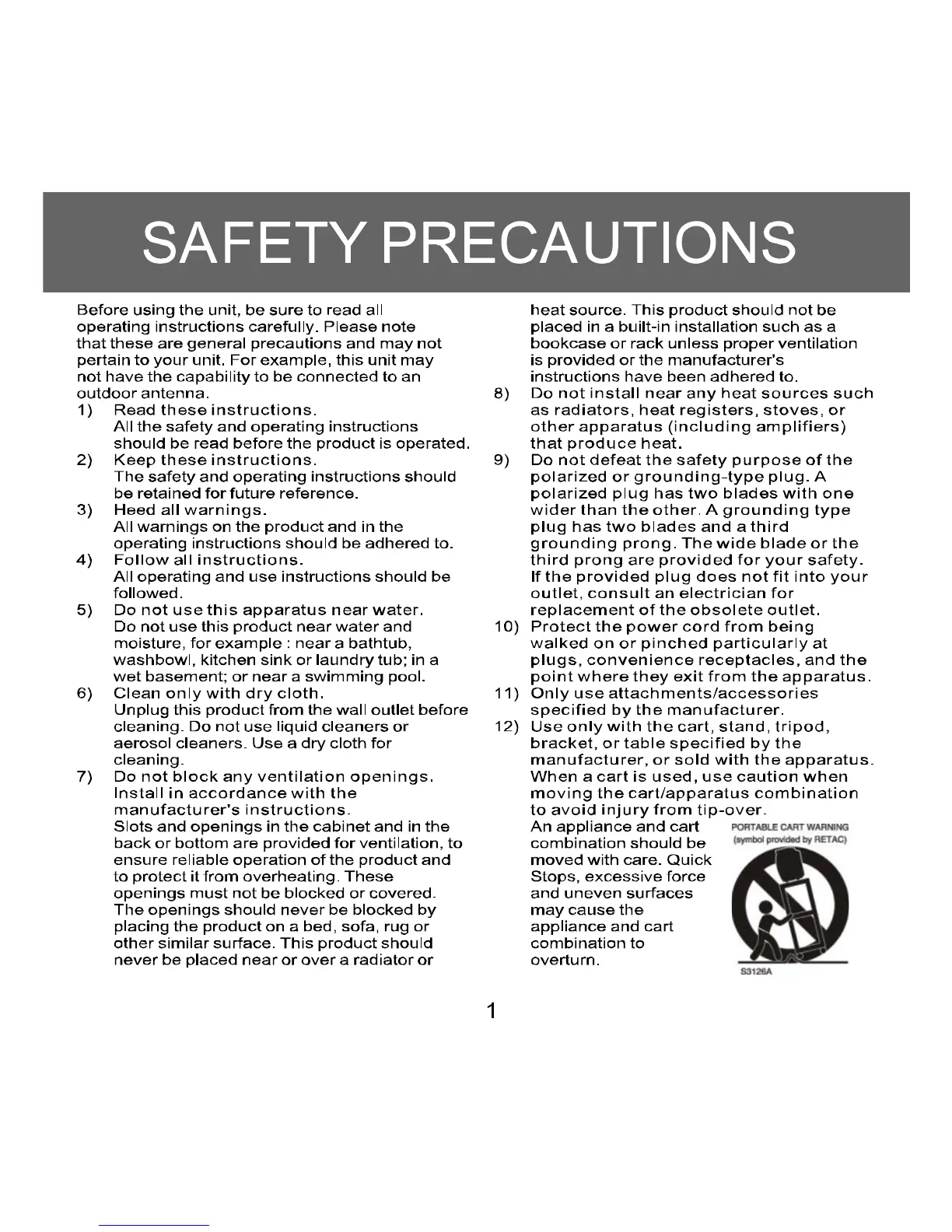 Craig CMP615D - SAFETY PRECAUTIONS; Instruction Adherence and Warnings; Environmental and Cleaning Safety; Ventilation, Installation, and Electrical Safety