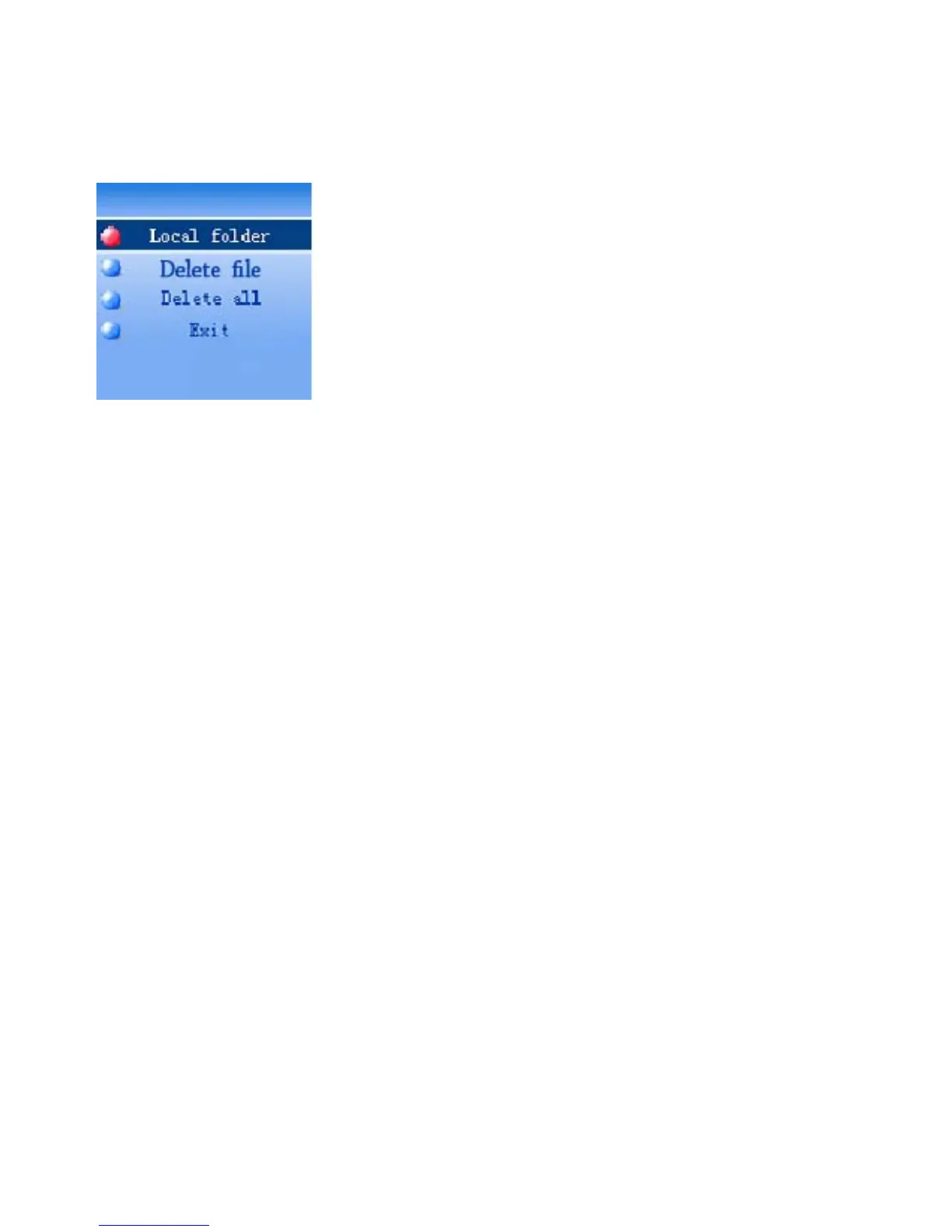 4. Press the >>I or I<< button to select Local folder; Delete file or Delete all then press