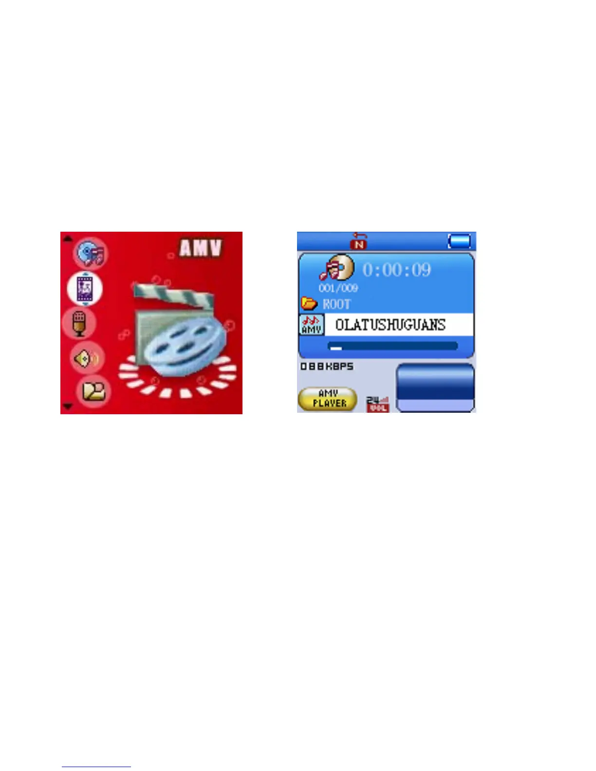 2. Press the >>I or I<< button to select AMV then press MENU button to enter, the