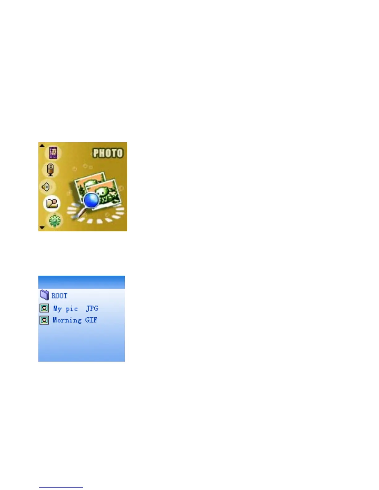 3. Press MENU button to enter, the list of photos will appear on the display.