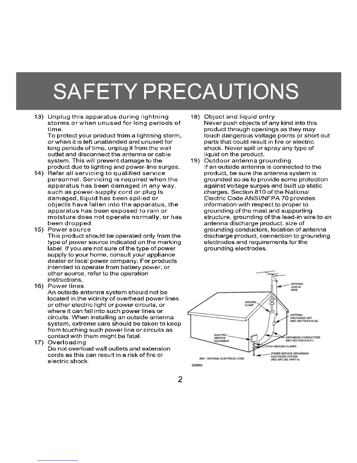 Craig CMP615D - Storms, Servicing, and Power Safety; Overloading, Object Entry, and Antenna Grounding