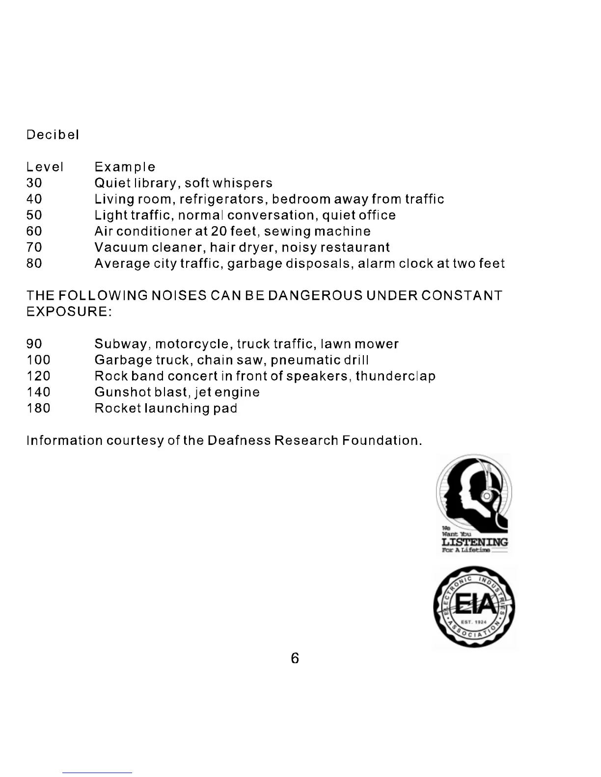 Craig CMP615D - Decibel Levels and Noise Exposure; Dangerous Noise Exposure Levels