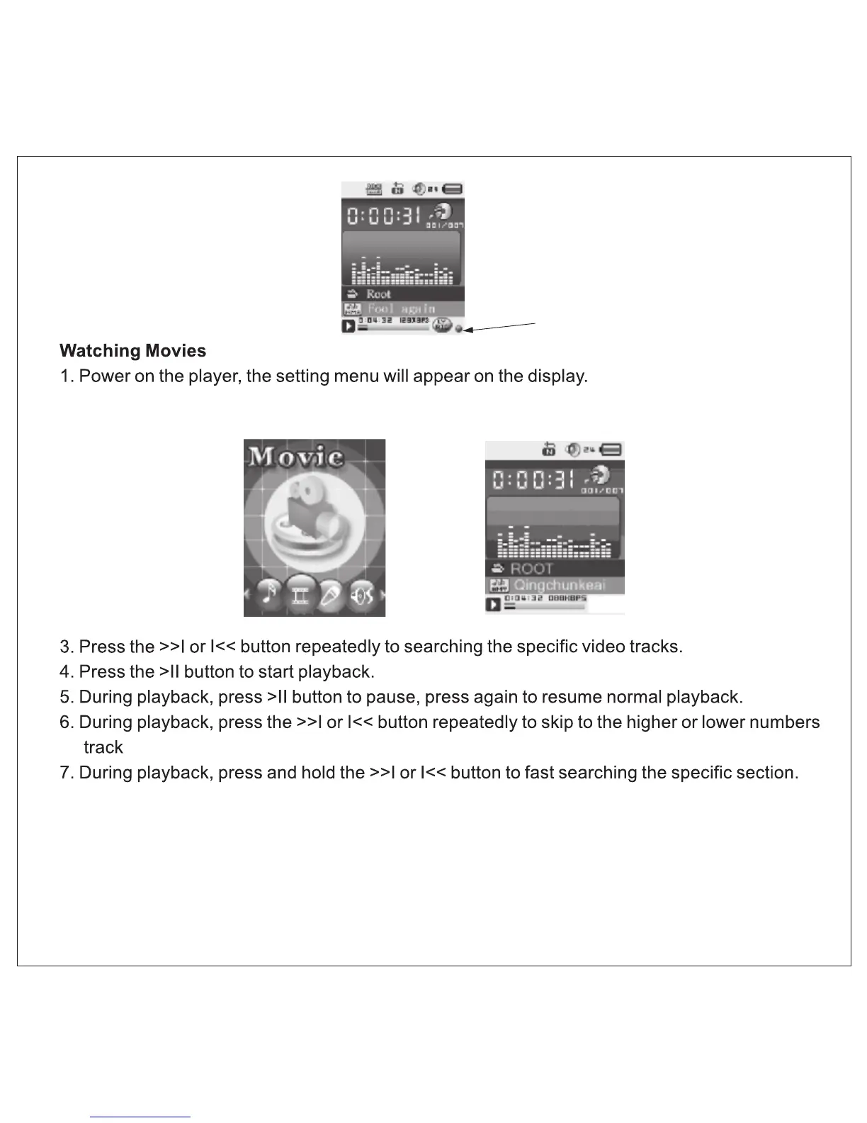 2. Press the >>I or I<< button to select Movie then press MENU button to enter, the display