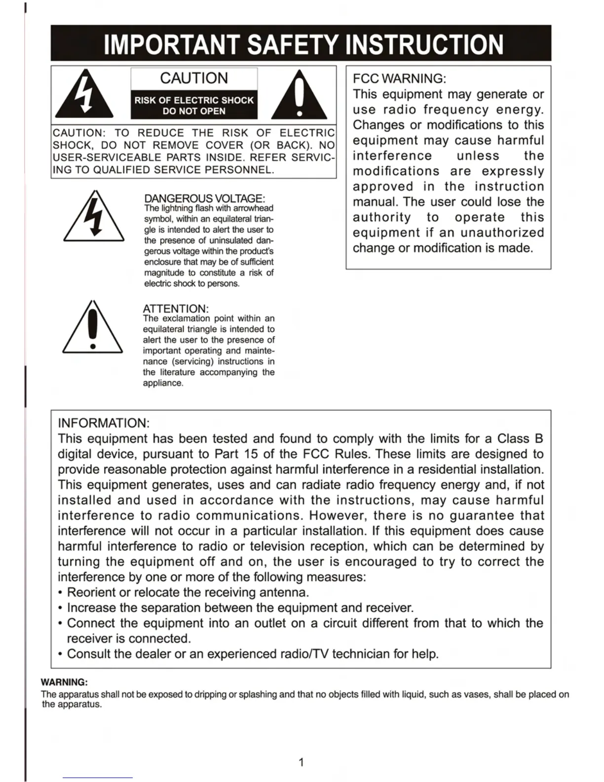 Craig CR45365 - IMPORTANT SAFETY INSTRUCTION