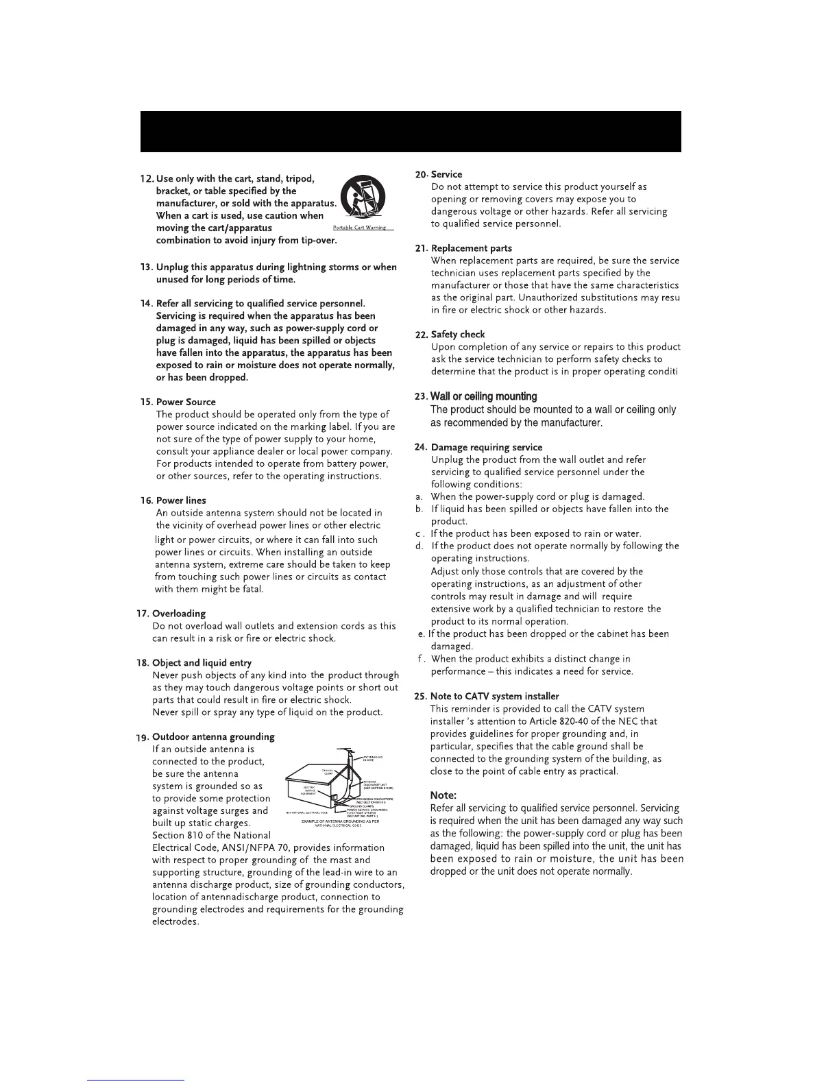 Craig CSH308 - IMPORTANT SAFETY INSTRUCTIONS; Use only with the cart, stand, tripod, bracket, or table specified by the manufacturer; Unplug this apparatus during lightning storms or when unused for long periods of time; Refer all servicing to qualified service personnel