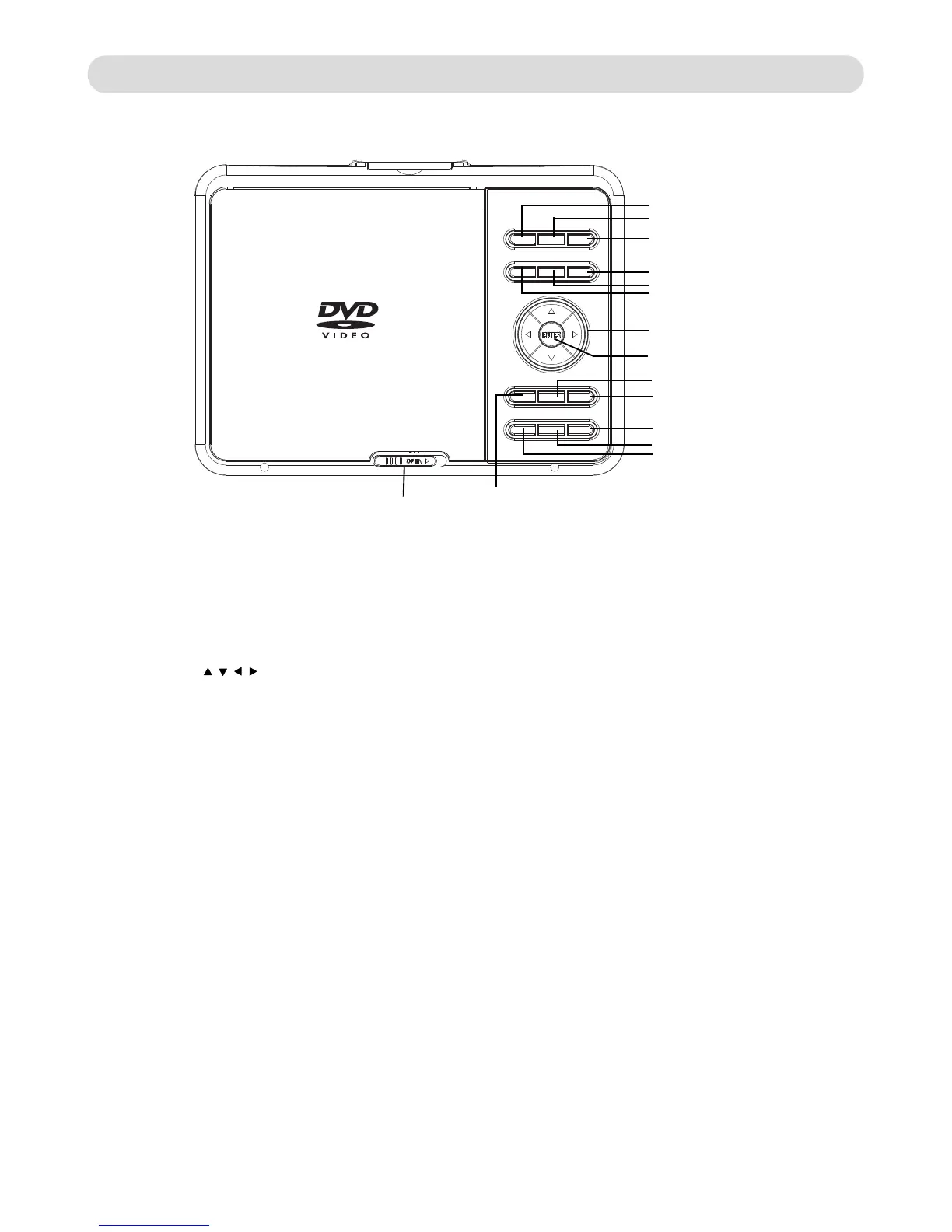 SETUP: Press to enter DVD system setup menu and press again to exit.