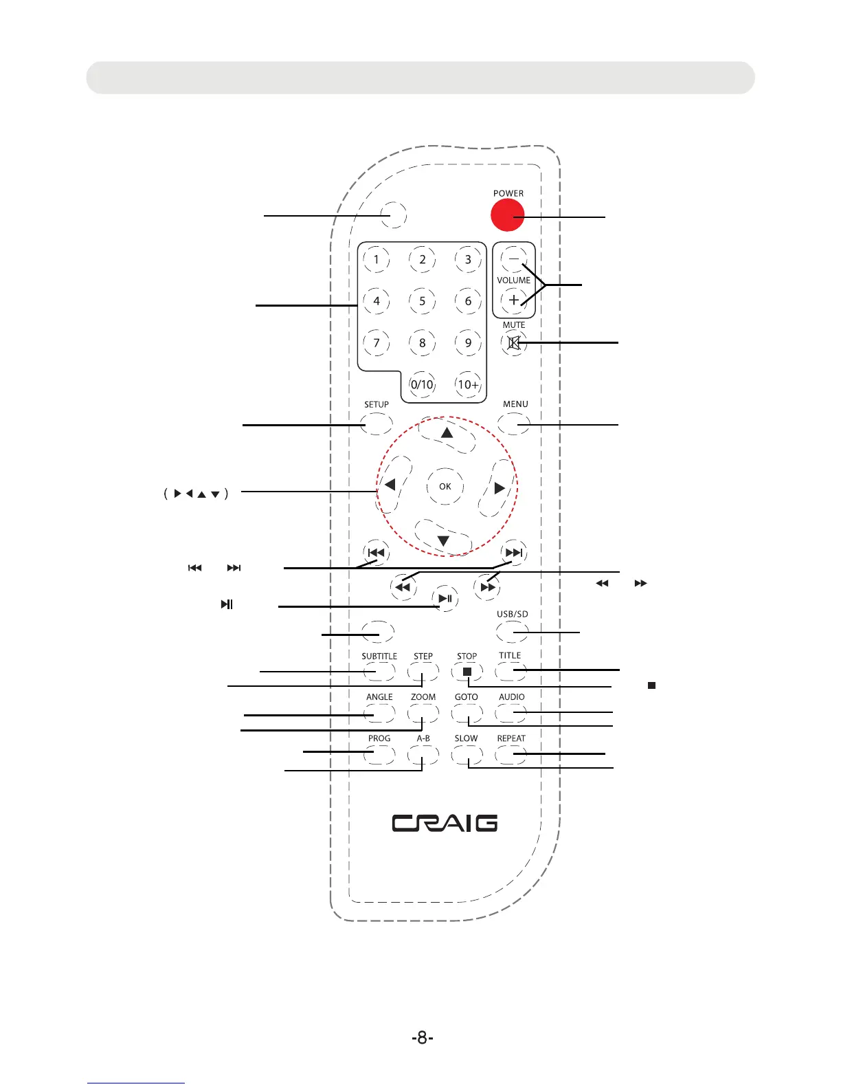 Craig CTFT751tk - LOCATION OF CONTROLS (REMOTE CONTROL); Remote Control Button Functions