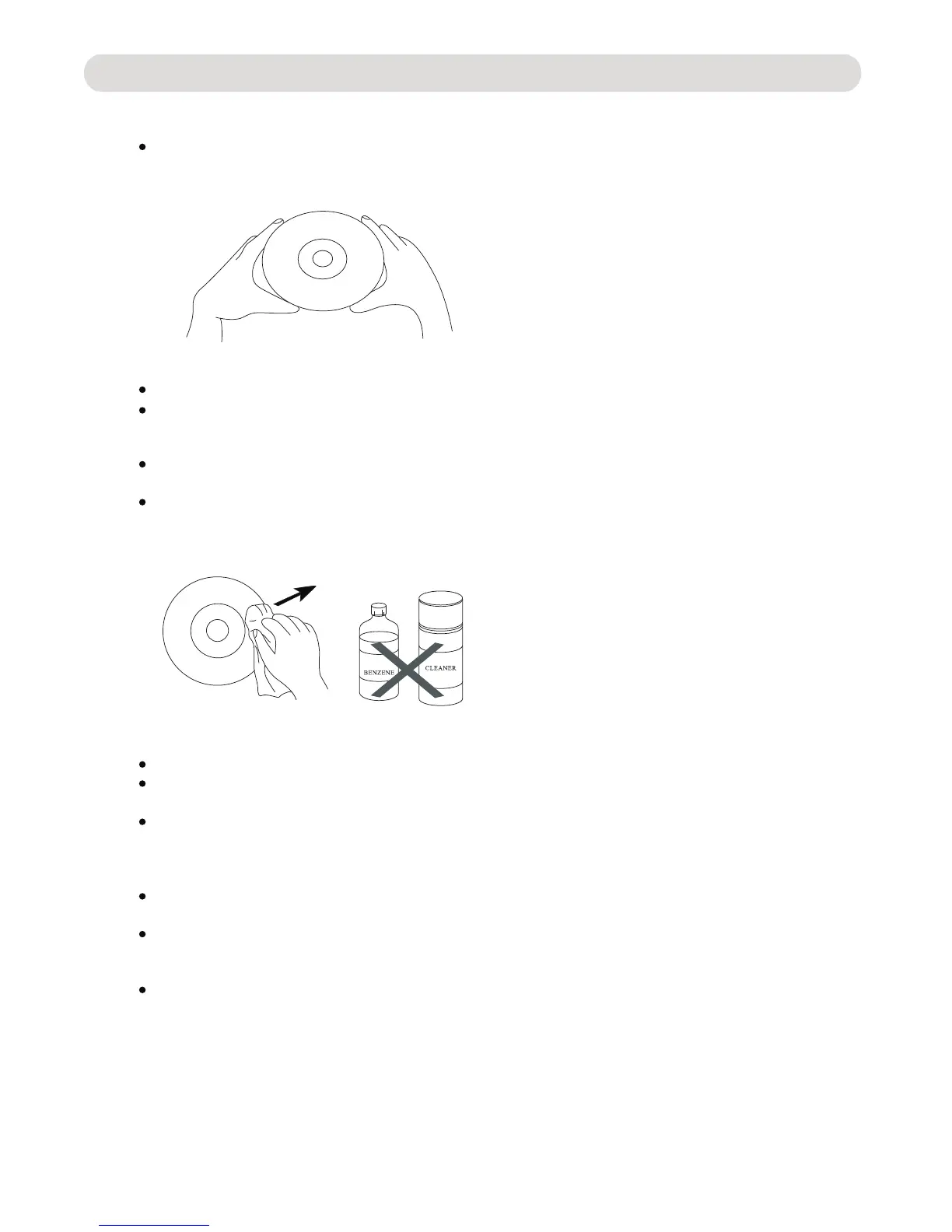 Clean the disc periodically with a soft, lint-free,dry cloth,