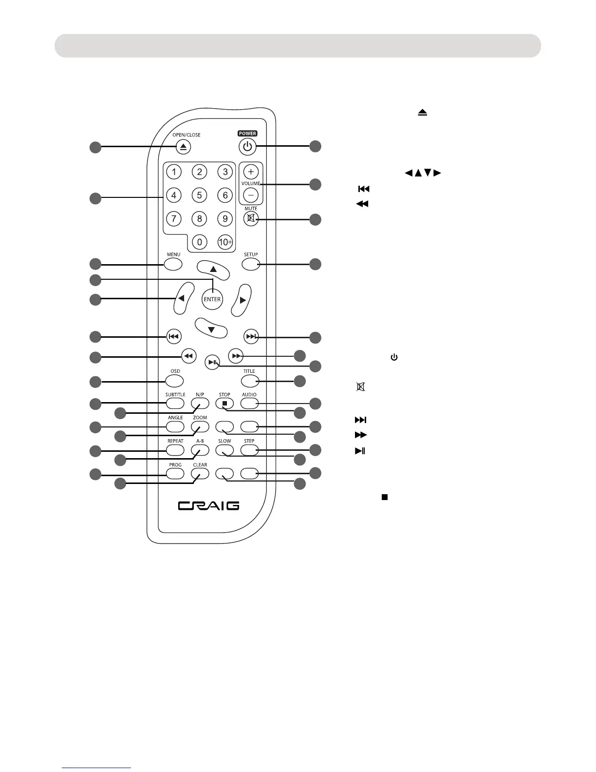 Craig CVD401A - Location of Features; Remote Control Features
