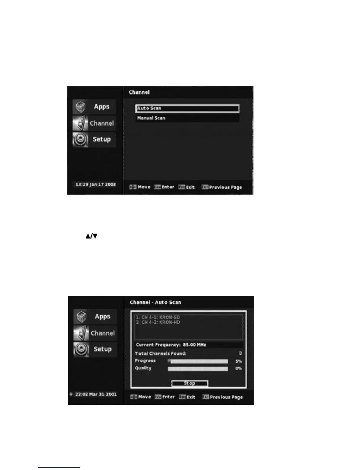 “ to focus “Auto Scan”, Press “ENTER” to scan ATSC program channels.