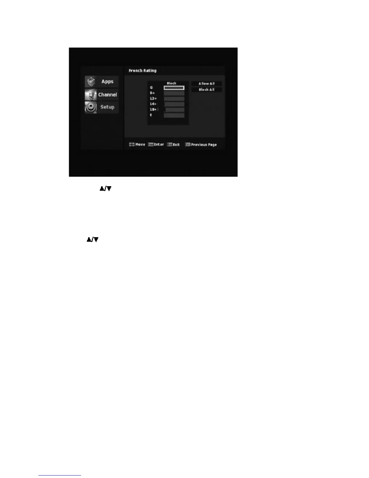 z Press “ ” to select the rating and press “OK” to block the rating. The higher