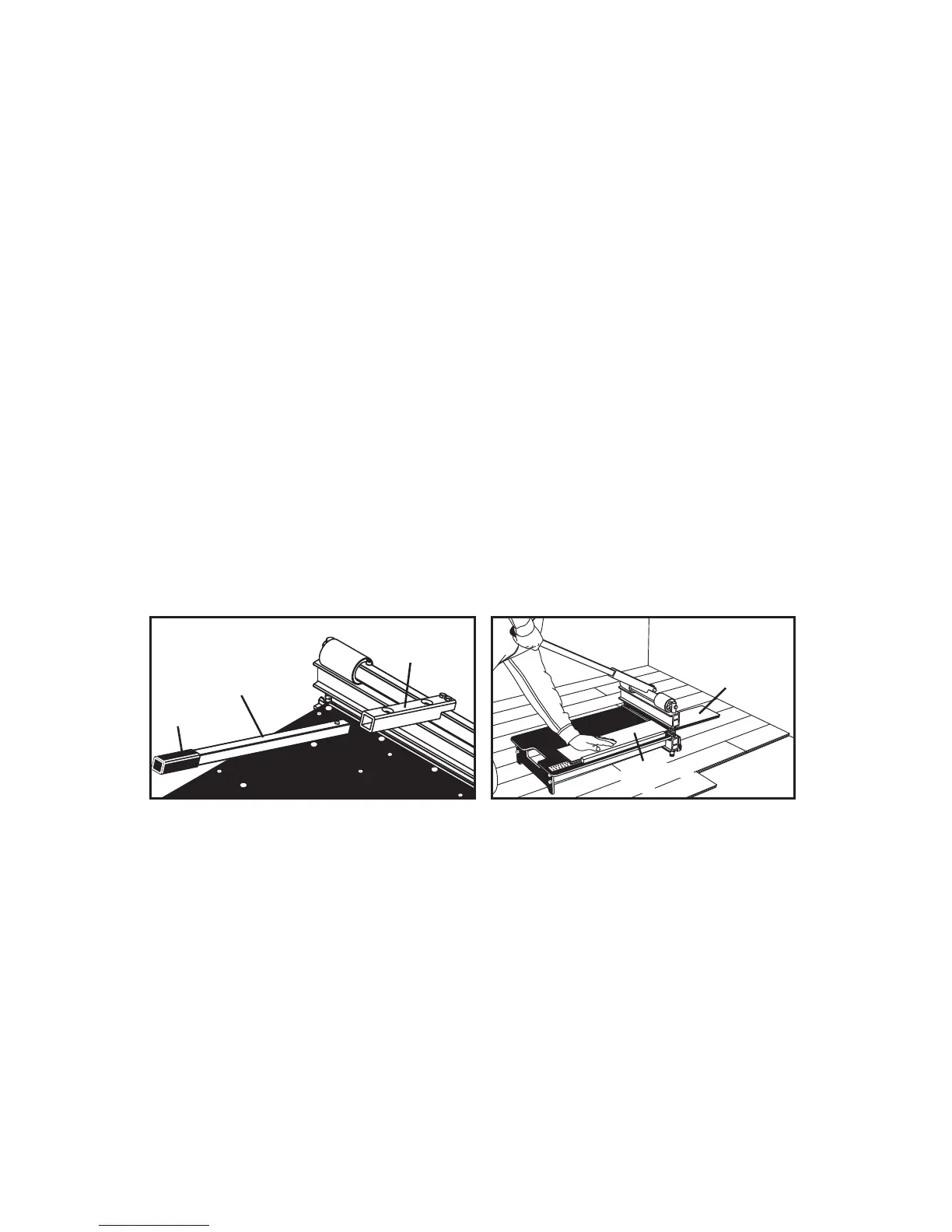 PREPARING TO CUT: Place the cutter at on the oor with its two guide