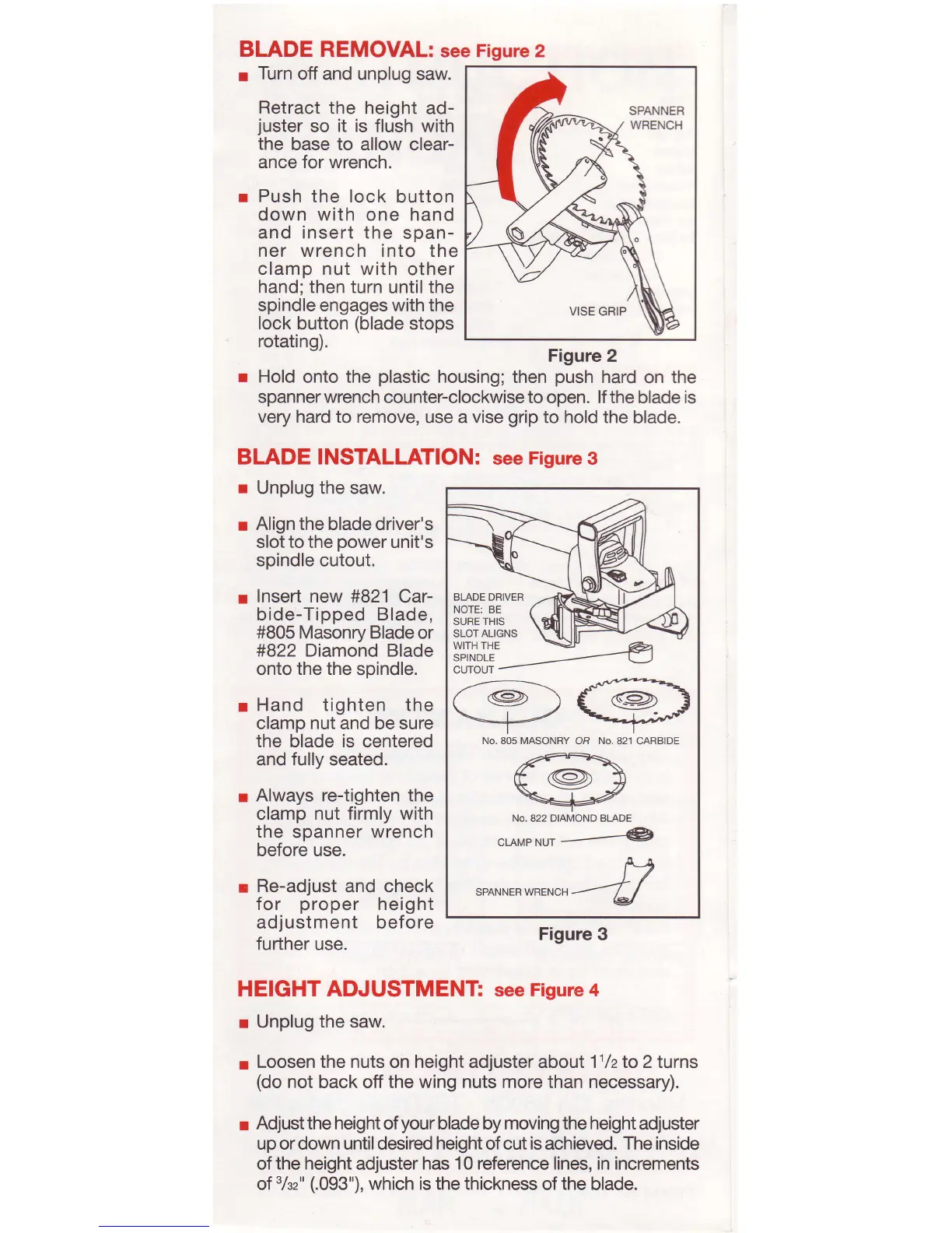 CRAIN 820/820V - Blade Removal; Blade Installation; Height Adjustment