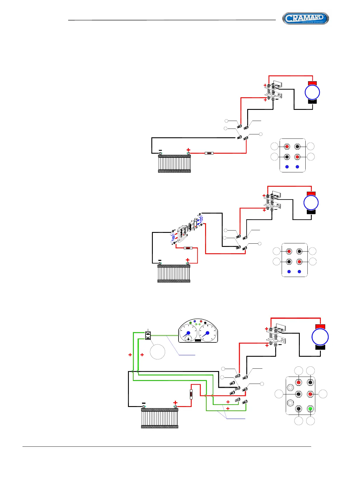 The diagrams to connect the electrical motorisation with the control unit and the vehicle battery can all