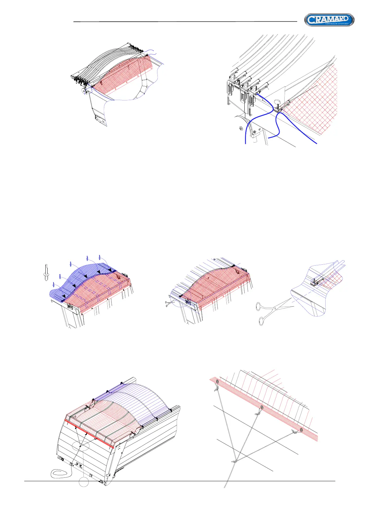 11. After having secured the tarpaulin sheet with three (3) or four (4) rivets, ABOVE THE OVAL BOW (so that