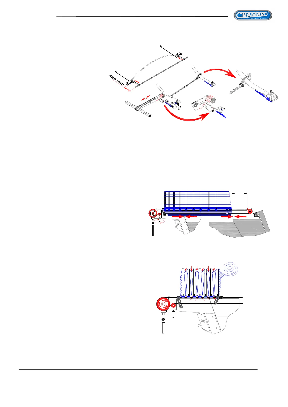 If the tarpaulin tends to get stuck and/or go across on the edges, it means that the RH and LH pulling ropes do not