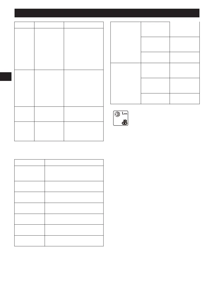 96 dB. Valeur acoustique. (Tondeuse à gazon)