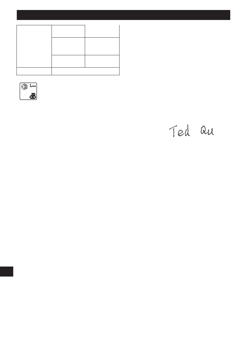 96 dB. Hodnota hluku. (Strunová kosačka)