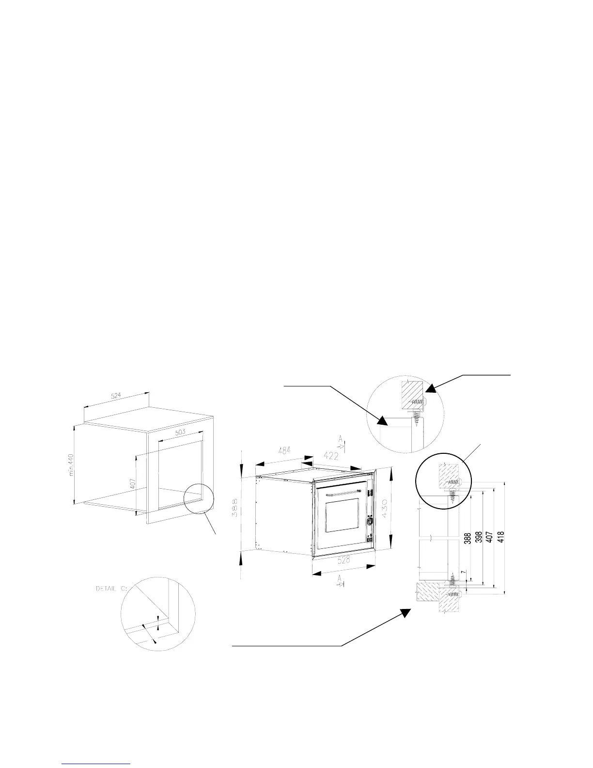 To build the appliance ino furniture a space with dimensions shown on fig. 1 - 6 must be