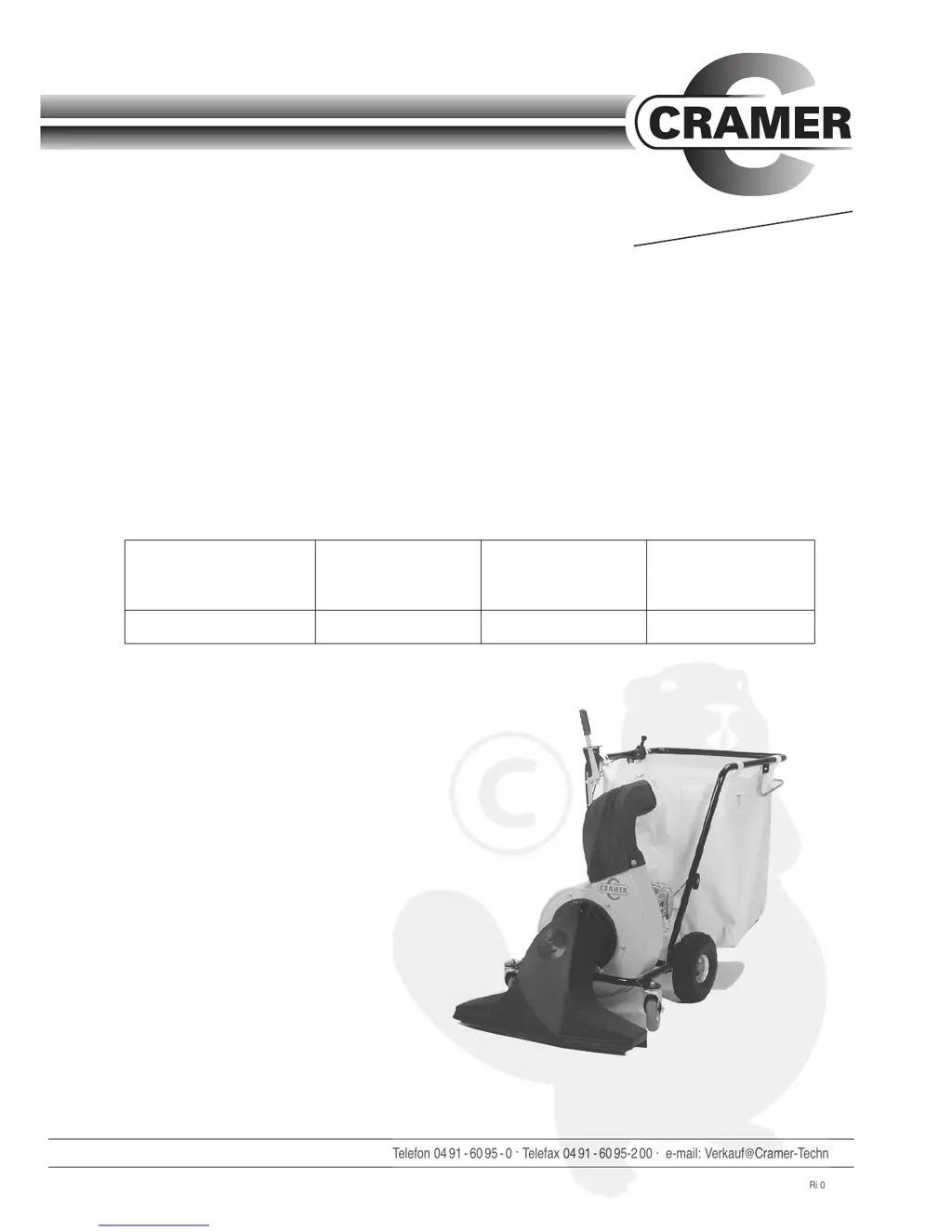 The Cramer Vacuum Cleaner engine might not start due to several reasons: * The ignition switch may be in the »0« position. If so, turn the ignition switch to the »1« position. * The fuel tank could be empty, in which case you should refill it. * A defective sparking plug can also prevent the engine from starting, so exchange the sparking plug. * Finally, the fuel line might be blocked or there could be water in the petrol. Empty the fuel line and tank and refill with new petrol.