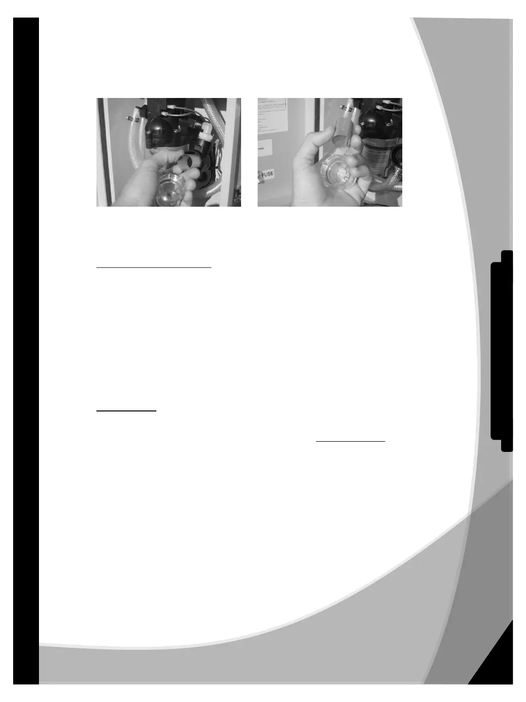 drain. Remember to turn the pump off when the tank is empty to prevent damage to the pump.