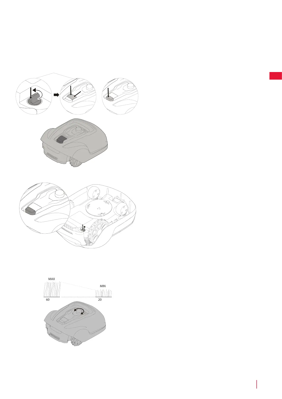 Girare in senso antiorario per diminuire l’altezza di taglio.