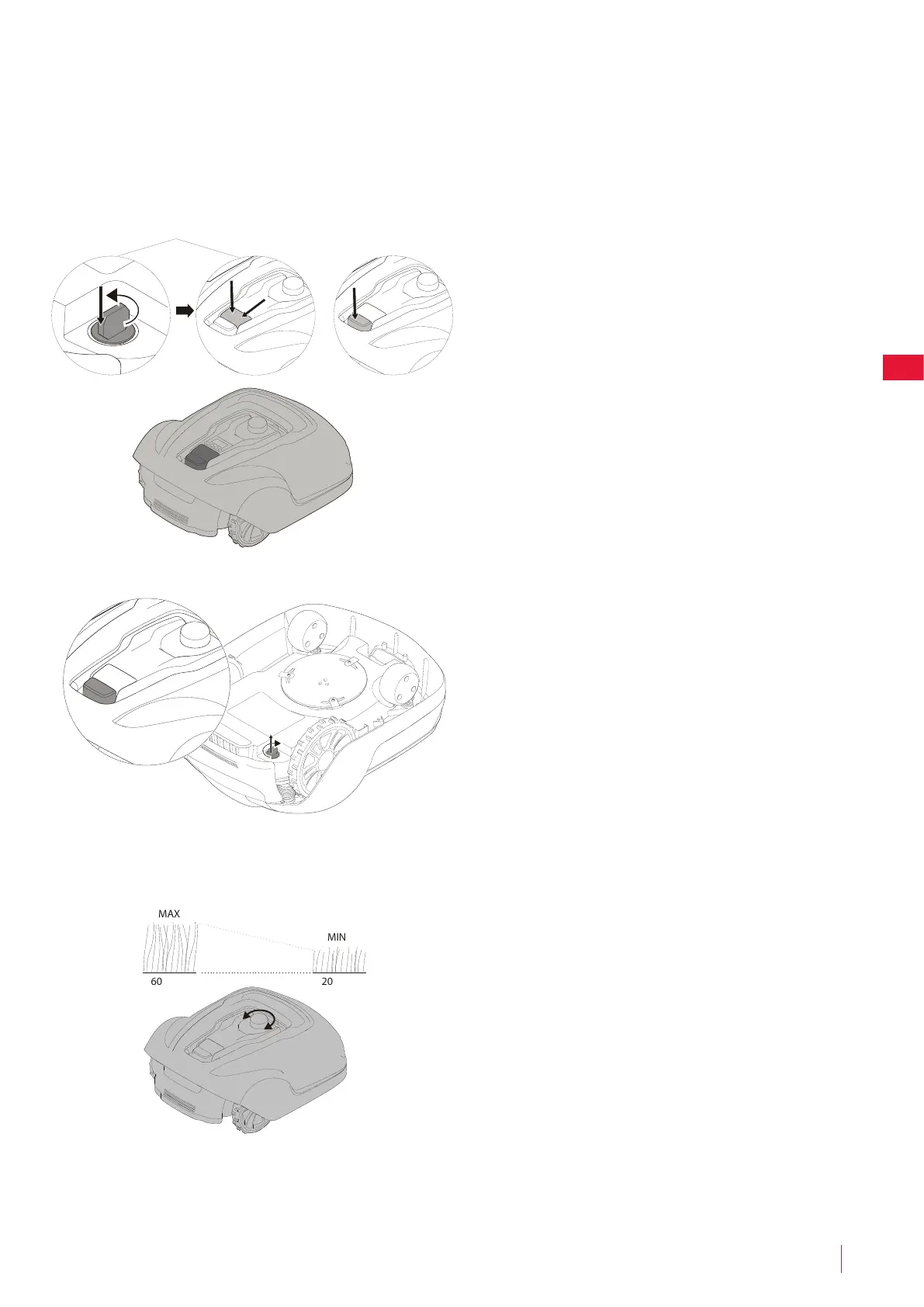 para evitar cortar o fio de delimitação e fio-guia. Reduza a configuração