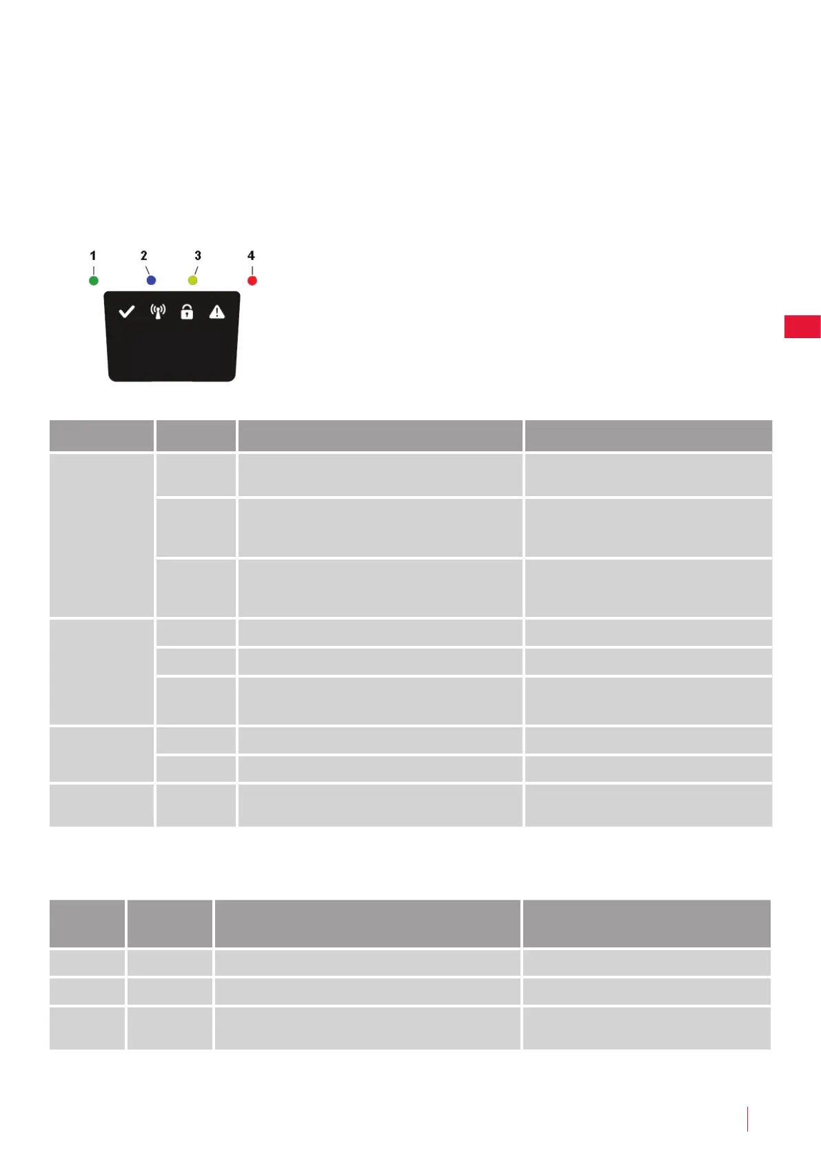 4. Erro (vermelho) Intermitente Corta-relva parado com o erro Verifique o motivo do erro e reinicie-o