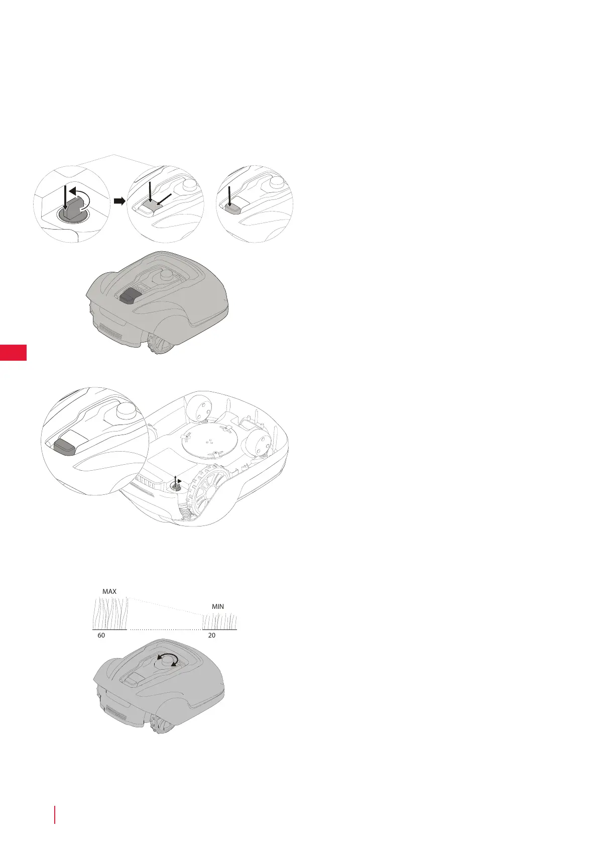 Lisää leikkuukorkeutta kääntämällä myötäpäivään.
